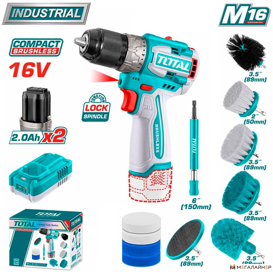 - Аккумулярторная дрель-шуруповерт - 1 шт.; - Аккумулятораная батарея TFBLI1620 2,0 Ач - 2 шт.; - Зарядное устройство TFCLI1613 1,3 А - 1 шт.; - Удлинитель 150 мм - 1 шт.; - Щетки - 11 шт.; - Инструкция;; - Коробка.