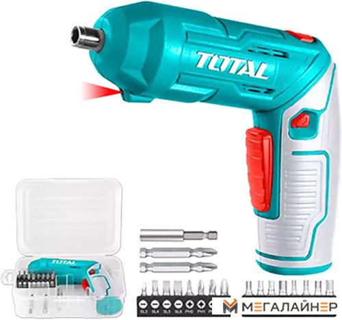 | Информация | TOTAL TSDLI0442 - отличное решение для мелких работ по монтажу/демонтажу. Питание от встроенной Li-ion батареи 4в. Зарядный порт – USB type C. 2 пространственных положения – горизонтальное и угловое. Обрезиненная рукоятка. Реверс. Подсветка рабочей зоны. В комплекте набор бит и кейс для хранения. |