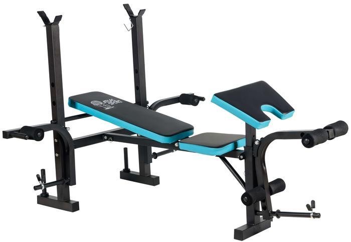 | Конструкция | стойка для штанги, скамья для жима штанги, парта Скотта, механизм для баттерфляя, блок для ног |