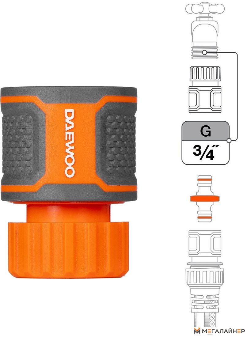 | Информация | - Изготовлен из прочного пластика, что гарантирует долговечность использования. - Прорезиненные поверхности и удобная форма обеспечивают комфорт при эксплуатации. - Надежный 3-лепестковый замок и жесткая металлическая пружина обеспечивают надежное соединение, предотвращая протекание воды. - Удлинённый хвостовик защищает шланг от заломов и повреждений в месте крепления. - Совместим с базовой системой полива DAEWOO и другими производителями. - Идеален для соединения шлангов DWH 1108 и DWH 1115. - Обратите внимание на совместимость! |