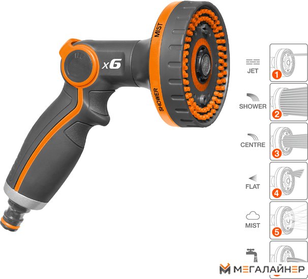 | Информация | Включение и регулировка напора воды одним пальцем. Плавная регулировка потока воды. 6 типов струи позволяют выбрать оптимальный режим для очистки любых поверхностей и бережного полива. Силиконовые форсунки легко очищаются от известковых отложений. Прорезиненная рукоятка эргономичной формы. Фильтр грубой очистки с возможностью промывки. Коннектор с аквастопом в комплекте для быстрого начала работы. Комплектация Пистолет-распылитель - 1 шт. Коннектор с аквастопом - 1 шт. Картонный подвес |