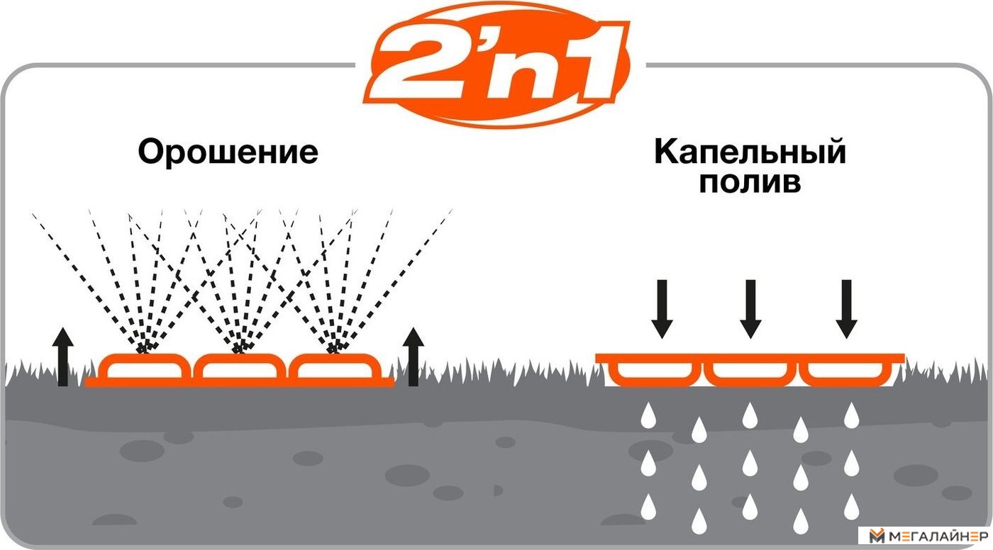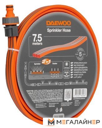| Информация | - Использование 2 в 1. При перфорации шланга вверх он функционирует как дождеватель, обеспечивая равномерное орошение по всей длине. Перевернув шланг с перфорацией вниз, вы получите капельный полив, который подает воду прямо к корням растений. - Экономичный полив. При давлении 4 бара расход воды составляет всего 0,3 л/мин на 1 м шланга, что позволяет поливать площадь до 7 м?. - Безопасный. Шланг изготовлен из материалов, не содержащих токсичных фталатов и тяжелых металлов. - Долговечный. Шланг обладает длительным сроком службы и устойчив к перепадам температуры и УФ-излучению, что позволяет оставлять его на улице на протяжении всего сезона. - Преимущества: - Возможность использования 2 в 1: как дождеватель и как шланг для капельного полива. - Три ряда перфорации для эффективного полива без образования луж. - Фильтр грубой очистки с возможностью промывки. - Устойчив к УФ-излучению и низким температурам. - Не содержит токсичных фталатов и тяжелых металлов, защищен от образования водорослей. - Экономичный расход воды до 4 л/мин. - Идеально совместим с базовой поливочной системой DAEWOO и другими производителями. |