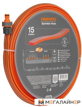 | Информация | - Использование 2 в 1. При перфорации шланга вверх он функционирует как дождеватель, обеспечивая равномерное орошение. Перевернув шланг с перфорацией вниз, вы получаете капельный полив, который подает воду прямо к корням растений. - Экономичный полив. При давлении 4 бара расход воды составляет всего 0,3 л/мин на 1 м шланга, что позволяет поливать площадь до 7 м?. - Безопасный. Шланг изготовлен из материалов, не содержащих токсичные фталаты и тяжелые металлы. - Долговечный. Шланг обладает длительным сроком службы и устойчив к перепадам температуры и УФ-излучению, что позволяет оставлять его на улице на протяжении всего сезона. - Преимущества: - Возможность использования 2 в 1: как дождеватель и как шланг для капельного полива. - Три ряда перфорации для эффективного полива без образования луж. - Фильтр грубой очистки с возможностью промывки. - Устойчив к УФ-излучению и низким температурам. - Не содержит токсичных фталатов и тяжелых металлов, защищен от образования водорослей. - Экономичный расход воды до 4 л/мин. - Рабочее давление от 2 до 6 бар. - Идеально совместим с базовой поливочной системой DAEWOO и другими производителями. |