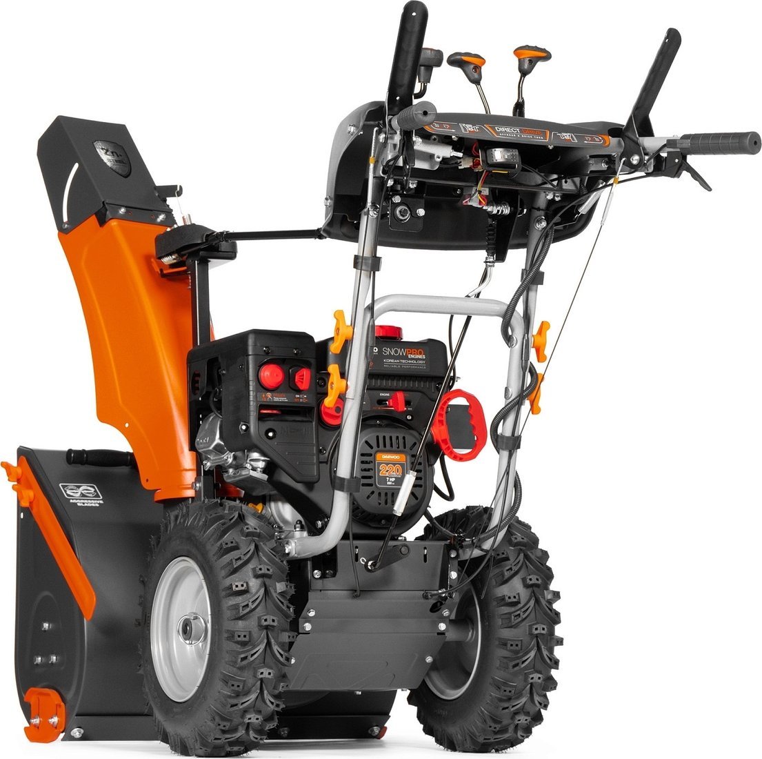 | Информация | Двигатель DAEWOO зимней серии 220 Winter Уверенный запуск при отрицательных температурах. Повышенный моторный ресурс. Увеличенный глушитель и сниженный уровень шума. Вместительный топливный бак на 3.2 литра. Уникальные колеса X?TRACK Колеса с протектором специальной формы X?TRACK обеспечивают наилучшее сцепление с заснеженной и обледенелой поверхностью. Увеличенный диаметр ширины колес гарантирует высокую проходимость даже при высоком снежном покрове. Трансмиссия Disc-o-Matik Система обеспечивает выбор скоростей: 6 скоростей вперед и 2 скорости назад, в зависимости от высоты снежного покрова. Простая и одновременно надежная система перемещения фрикционного диска для изменения скорости. Панель управления Панель управления с системой изменения скорости передвижения, направления и дальности выброса снега обеспечивает комфортное управление и работу со снегоуборщиком. Взаимная блокировка рукояток Нажатие 2-х рукояток управления приводит к их взаимной блокировке. Это позволяет управлять снегоуборщиком одной рукой, и одновременно изменять направление и дальность выброса снега без остановки работы. Система изменения направления выброса Изменение угла выброса на 200 градусов дает возможность мгновенно изменять направление и дальность выброса снега непосредственно с панели оператора с большим углом поворота. Электрозапуск 220 Вольт Обеспечивает легкий запуск двигателя при температурах до -30?C простым нажатием кнопки. Стартер интегрирован в двигатель и оснащен влагозащищенной вилкой для подключения к розетке напряжением 220 Вольт. Подогрев рукояток Для комфортной работы при низких температурах снегоуборщик снабжен подогревом рукояток управления. Кнопка включение и выключение размещена на панели и защищена от попадания снега и влаги. Система облегченного маневрирования DIRECT DRIVE Система облегченного маневрирования включает в себя возможность отключения каждого колеса в отдельности и позволяет легко выполнить поворот. Идеальная проходимость и маневренность Основной вес снегоуборщика приходится на ось колес, что гарантирует лучшее сцепление с поверхностью. Такая развесовка предоставляет оператору легкость маневрирования и лучшую проходимость в классе. Усиленный редуктор Усиленный редуктор в паре со стальными опорами шнека с подшипниками передает до 95% крутящего момента на рабочие узлы сборки и выброса снега. Выходной вал редуктора крепится на подшипниках большого диаметра, что обеспечивает высокую устойчивость механизмов к вибрации и ударам. LED фара Яркая LED фара обеспечивает освещение рабочей зоны перед снегоуборщиком, помогая работать в темное время суток. |