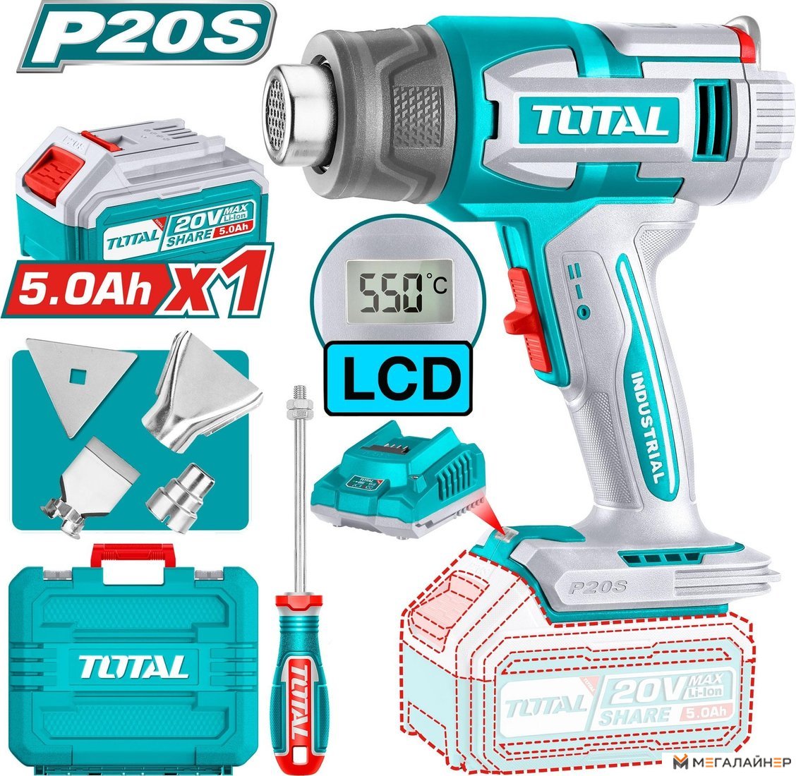 | Комплект поставки | - Термовоздуходувка - 1 шт. - Аккумулятор 5,0 Ач TFBLI20011 - 1 шт. - Зарядное устройство 2,0 А TFCLI2001 - 1 шт. - Редукционная насадка - 1 шт. - Отражающая насадка - 1 шт. - Плоская насадка - 1 шт. - Скребок - 1 шт. - Кейс. |
