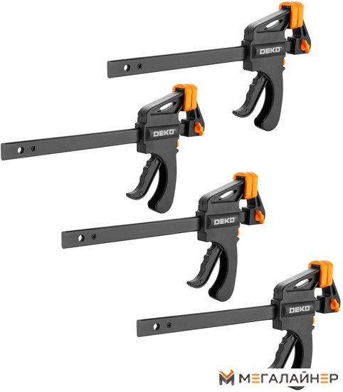 | Информация | Набор быстрозажимных струбцин 150 мм DEKO CL150-4, 4 шт предназначен для временной фиксации деталей при их обработке. Ширина зажима - 150 мм. В комплекте 4 шт. струбцин быстрозажимных. Сила сжатия, кг 55 |