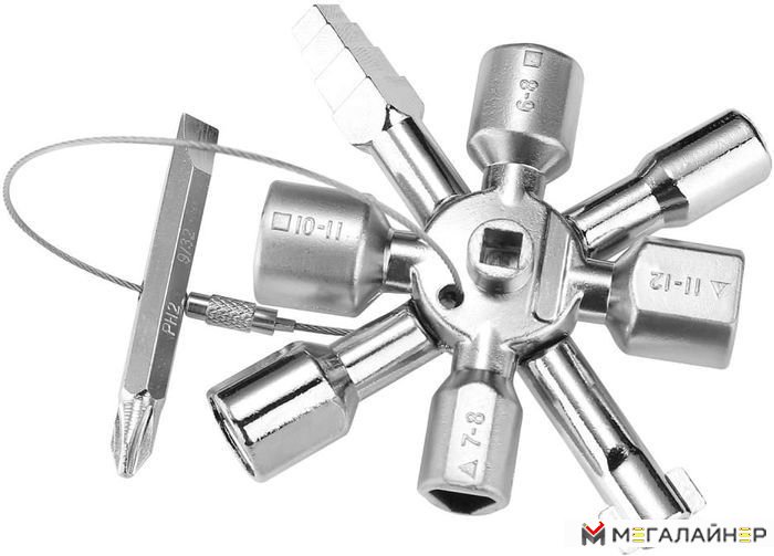 | Информация | Многофункциональный ключ - 1 шт. Характеристики: размеры профилей: квадрат - 5/6-7/ 8-9/10-11 мм; треугольник - 7-8/9-10/11-12 мм; захватывающая способность полумесяц: 6 мм; хвостовик с крылышками: 3-5 мм; квадрат с уступами: 6-9 мм; адаптер: 1/4"; бита Комплектация: блистер |