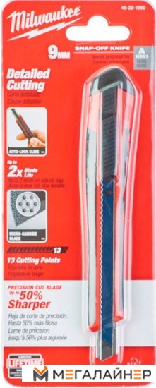 | Информация | Металлический фиксатор для максимальной прочности и длительного срока службы.Фиксатор позволяет быстро регулировать положение лезвия.Обрезиненное покрытие предотвращает скольжение и является стойким к ацетону.Лезвие с микрокарбидным покрытием для долгого срока службы и чистого реза.Ширина лезвия 9 мм. |