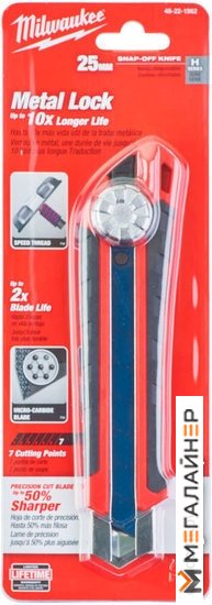 | Информация | Металлический фиксатор для максимальной прочности и длительного срока службы.¦ Фиксатор* позволяет быстро регулировать положение лезвия.¦ Автоматический скользящий фиксатор позволяет быстро регулировать положение лезвия.¦ Крышка с клипсой отламывает сегменты лезвия.¦ Обрезиненное покрытие предотвращает скольжение и является стойким к ацетону.¦ Лезвие с микрокарбидным покрытием для долгого срока службы и чистого реза.Ширина лезвия 25 мм. |