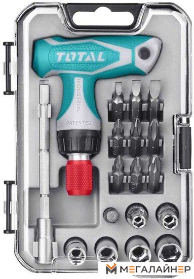 | Информация | Отвертка Т-образная реверсивная с насадками TOTAL TACSD30186 (18 предметов) |