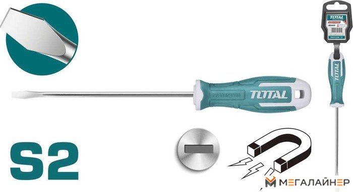 | Информация | Отвертка шлицевая SL8 150 мм TOTAL THT268150 |