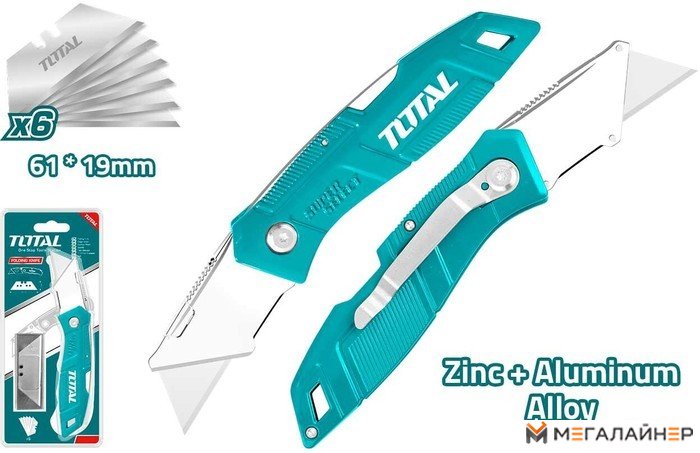| Информация | Нож строительный складной со сменными лезвиями TOTAL THT5136236 |