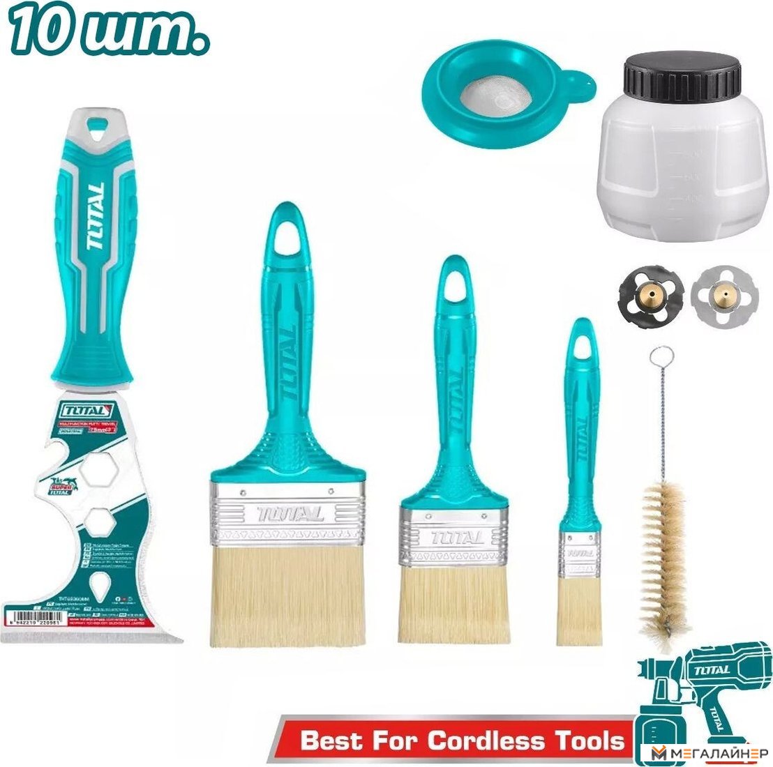 | Информация | Набор принадлежностей для краскопульта и малярные инструменты TOTAL TMGF0702 |