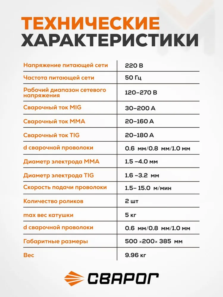 - Три полноценных режима сварки: MIG/MAG, MMA и TIG, в каждом режиме широкий набор параметров