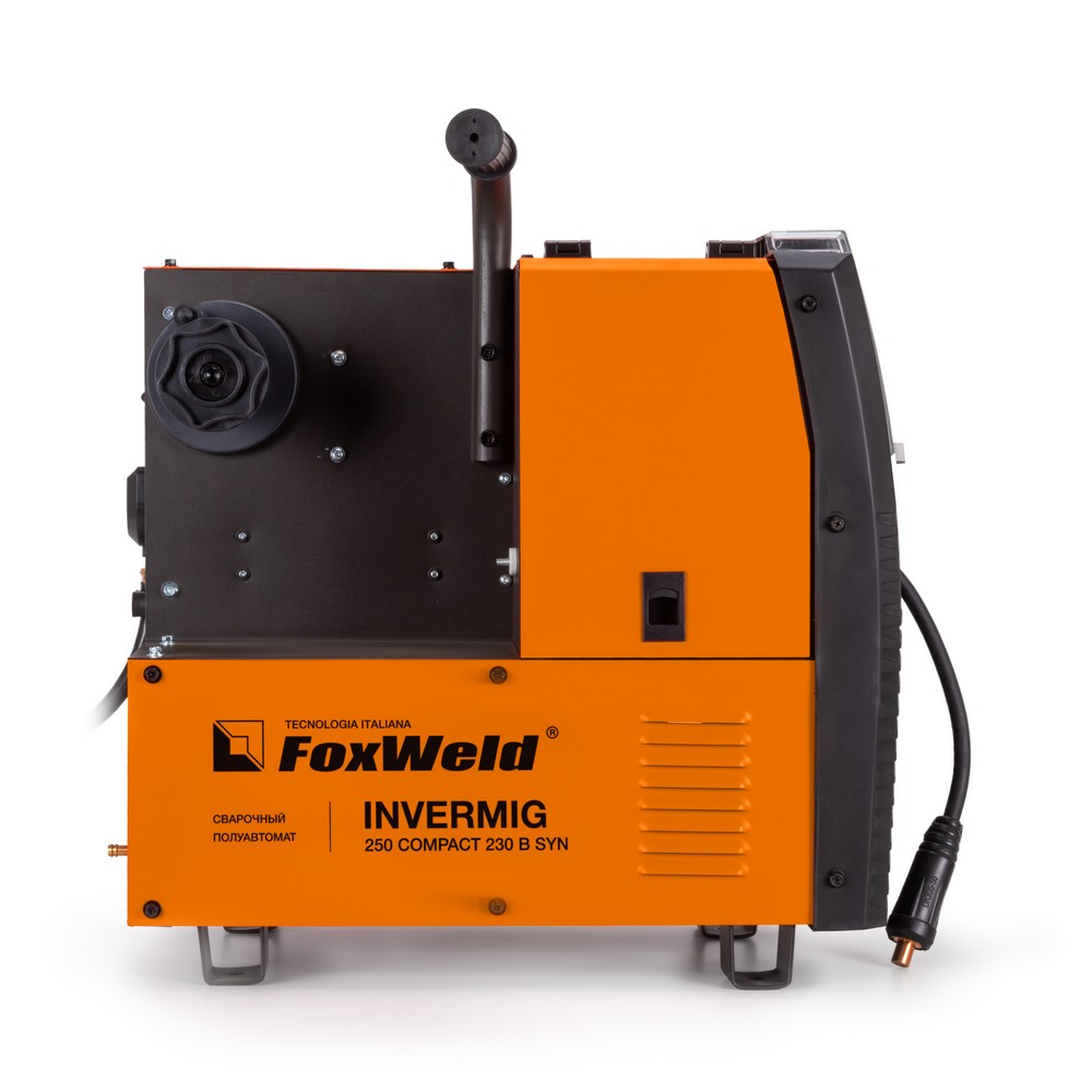Многофункциональный сварочный полуавтомат INVERMIG 250 Compact 230В SYN с синергетическим режимом управления позволяет производить сварку постоянным током, используя инверторную технологию преобразования и управления сварочным током, что уменьшает габариты и вес по сравнению с традиционными трансформаторными полуавтоматами. С помощью этой модели можно проводить полуавтоматическую сварку (MIG/MAG) сплошной проволокой в среде защитного газа и самозащитной проволокой без использования защитного газа, ручную дуговую сварку (ММА) на постоянном токе штучным электродом с рутиловым и основным покрытием и аргонодуговую сварку (ТIG LIFT) на постоянном токе с возбуждением дуги касанием вольфрамового электрода. Регулировка индуктивности позволяет вести процесс сварки с минимальным разбрызгиванием металла и приспосабливать процесс к любому типу работ. На задней панели расположена розетка 36 В для подключения подогревателя газа, который необходим для защиты обледенения редуктора во время продолжительной работы.