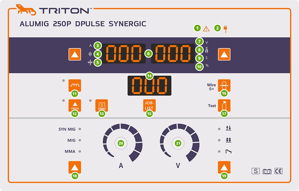 Аппарат обладает расширенным функционалом для работы с алюминием и синергетическими настройками Job List для автоматической настройки аппарата при заданных материале и диаметре сварочной проволоки. Универсальный сварочный полуавтомат с двойным пульсом TRITON ALUMIG 250P DPULSE SYNERGIC предназначен для сварки в режимах MIG/MAG, MIG/MAG PULSE и MMA. Инвертор подходит для сварки алюминия (чистого и сплавов), стали, меди, чугуна и никеля.