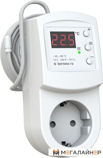 | Информация | Терморегулятор terneo rz 2м оснащен выносным датчиком температуры воздуха. Контролируйте работу электрообогревателей, инфракрасных панелей, а также систем охлаждения в диапазоне температур от 0 до 30 °С.Таймер позволяет терморегулятору начать работу через 0,5–99 часов. Это особенно удобно, когда вы собираетесь поехать куда-то на выходные или просто хотите выключить обогрев/охлаждение на ночь.Вы можете просмотреть время работы, когда осуществлялась подача нагрузки на систему отопления или охлаждения. Значение встроенного счетчика времени можно сбрасывать. Таким образом, вы можете оценить потребление электроэнергии за отдельный период времени.Терморегулятор имеет цифровой экран, на котором отображается температура воздуха и который упрощает навигацию по меню. Для управления устройством вам достаточно всего трех кнопок.Вы можете заблокировать кнопки, чтобы не позволить изменить настройки детям или посторонним лицам, если терморегулятор установлен в общественном месте.Корпус терморегулятора изготовлен из самозатухающего поликарбоната. Устройство защищено от перегрева: если температура внутри корпуса достигнет 80 °С, терморегулятор выключится. Возобновление нагрева произойдет после снижения температуры до 60 °С и нажатия на любую из кнопок.Для начала работы необходимо просто включить терморегулятор в стандартную розетку. |