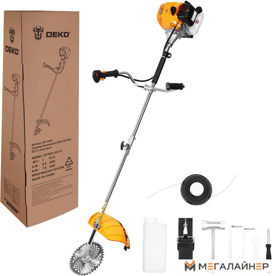 | Информация | Универсальный инструмент для ухода за садовым участком - бензиновый триммер DEKO DKTR52. Легкое управление благодаря "велосипедной" рукоятке. Блокиратор курка газа предотвращает случайный запуск. Подходит для различных видов работ на участке. |