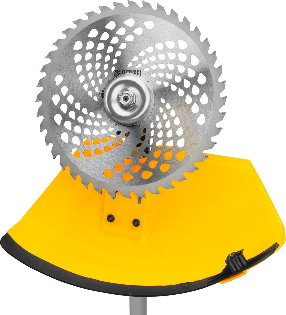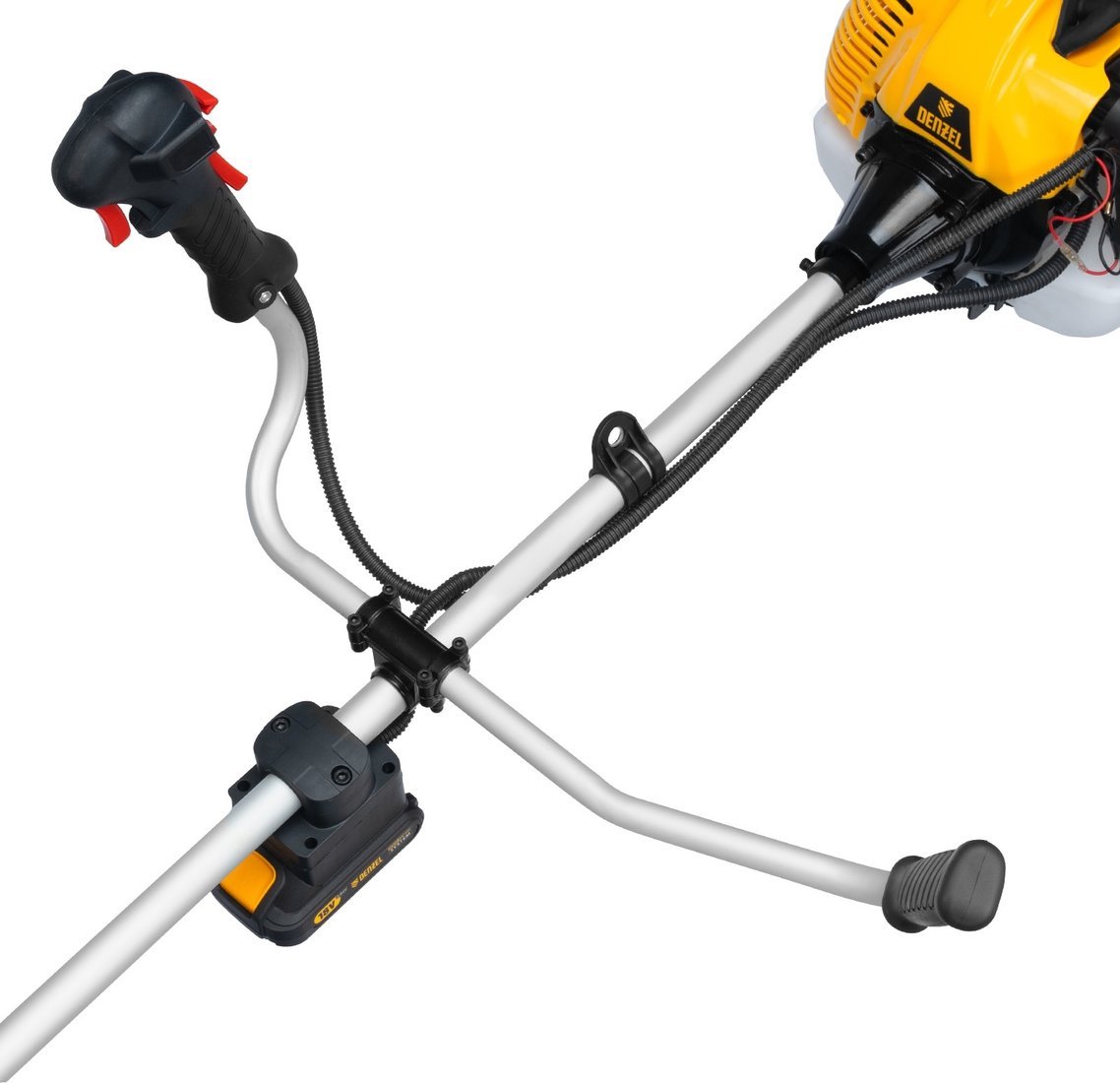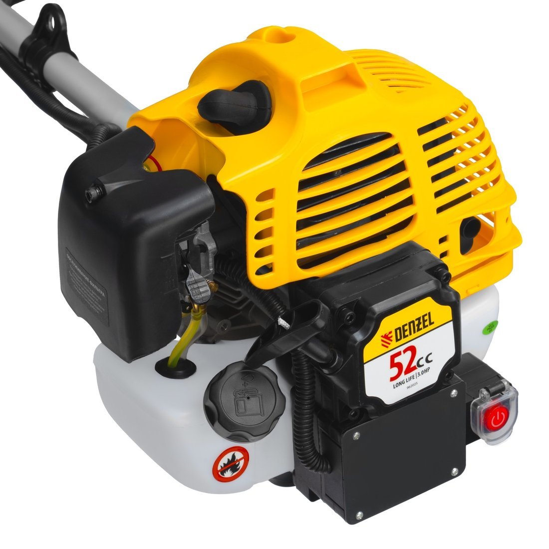 | Информация | - Бензиновый триммер Denzel DT-52E 962025 с мощным двигателем объемом 52 куб. см и неразъемной штангой идеально подходит для ухода за дачным участком. С его помощью вы сможете легко подравнять газон и скосить траву любого типа, включая жесткие растения, такие как полынь и крапива. Также он отлично справляется с срезанием кустарников и молодых побегов деревьев диаметром до 10 мм. В комплект входят катушка с леской и пильный диск, обеспечивающие ширину скашивания 42 и 25,5 см соответственно. - Одним из главных преимуществ триммера является его высокий ресурс. Хромированный цилиндр двигателя, прочное сцепление и надежный редуктор позволяют инструменту работать при повышенных нагрузках без потери эффективности. - Безопасность использования также на высшем уровне. Блокиратор курка газа предотвращает случайный запуск, а прочный пластиковый кожух защищает от летящей травы и других твердых частиц. - Легкий запуск в любых условиях обеспечивается благодаря электростартеру — достаточно одного нажатия на кнопку. Праймер для подкачки топлива упрощает запуск после длительного перерыва. - Двигатель поддерживает заданные обороты, что позволяет сосредоточиться на работе, не отвлекаясь на регулировку скорости. Полуавтоматическая система подачи лески позволяет удлинить ее прямо во время работы — достаточно слегка ударить катушкой о землю. - Автоматическая подрезка лески предотвращает перегрузку двигателя, укорачивая концы корда до нужной длины. - Удобство управления обеспечивается благодаря расположению всех функциональных клавиш на правой рукоятке. Плечевой ремень и мягкая пластина делают работу максимально комфортной, снижая вибрации и удары по бедру. - В комплекте с триммером вы получите аккумулятор, зарядное устройство и удобный дозатор для приготовления топливной смеси. Также есть возможность установки дополнительных дисков Denzel для быстрого удаления жесткой растительности. |