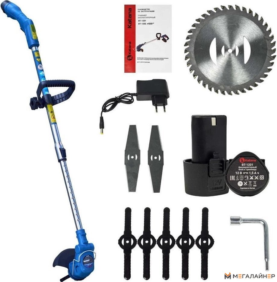 | Комплектация | Триммер аккумуляторный - 1 шт. Аккумулятор - 2 шт. Зарядное устройство - 1 шт. Комплект крепежа - 1 шт. Дополнительная рукоятка - 1 шт. Металлический ограничитель - 1 шт. Защитный кожух - 1 шт. Режущий диск - 1 шт. Стальной нож - 1 шт. Пластиковый нож - 5 шт. Руководство по эксплуатации - 1 шт. Упаковка - 1 шт. |