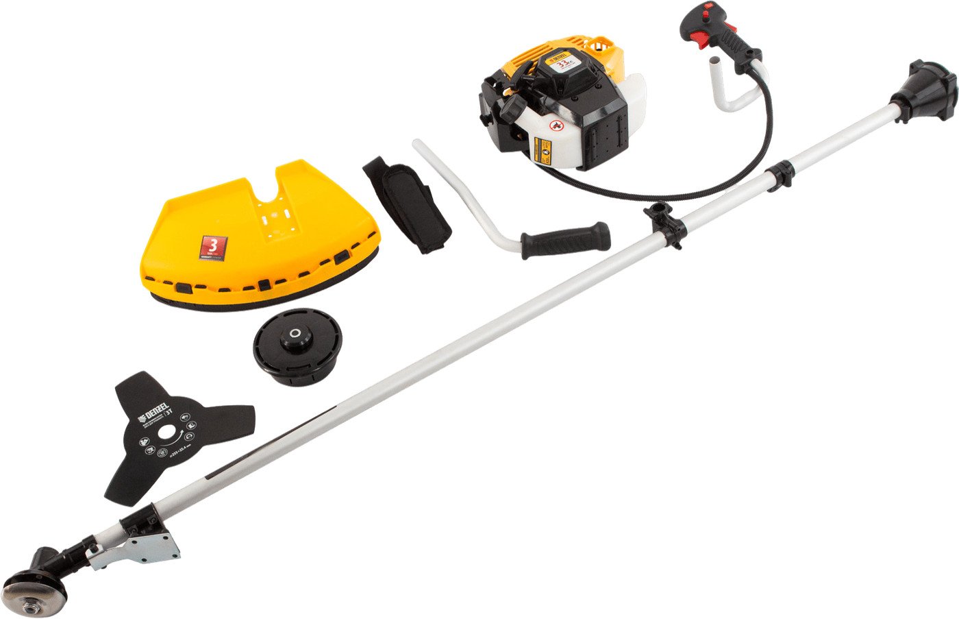 | Комплектация | - триммер бензиновый - 1 шт, - катушка - 1 шт, - нож трехлопастной 3Т - 1 шт, - одноплечевой ремень - 1 шт, - дозатор для приготовления смеси - 1 шт, - набор крепежа - 1 шт, - набор инструментов - 1 шт, |