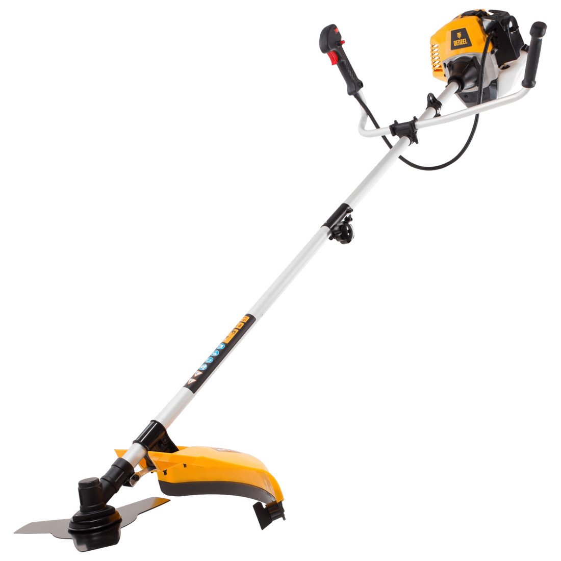| Информация | - Триммер Denzel DR-33S 96272 с двигателем объемом 33 см3 и разъемной штангой, состоит из 2 частей. Используется для ухода за газоном, скашивания травы различных типов, в том числе с жесткими стеблями (полынь, крапива, лебеда). Триммер эффективен на сложных участках: вдоль стен, в ямках и на возвышенностях, вокруг деревьев. Две режущие насадки — трехлопастный нож и катушка с леской — вращаются со скоростью 9500 об/мин, обеспечивая ширину скашивания 25,5 и 42 см. ; - Эффективную работу инструмента обеспечивает двухтактный двигатель мощностью 1,8 л.с. При этом триммер экономично расходует топливо, поэтому часто заправлять его не придется. - Преимущества: - Высокий ресурс — цилиндр двигателя покрыт пористым хромом и хонингован, чугунные колодки сцепления отличаются высокой прочностью, двигатель защищен от внешних воздействий ударопрочным корпусом. - Легкий запуск — усиленный стартер и праймер позволяют быстро приступить к работе даже после длительного перерыва. - Оптимизированная антивибрационная система — амортизаторы предотвращают негативное воздействие вибраций на суставы и сосуды. - Стабильная работа — шлицевое соединение вала с редуктором выполнено из высокопрочного металла и выдерживает значительные нагрузки. - Прочность — толщина стенок штанги составляет 1,5 мм, поэтому триммер не боится ударных нагрузок при случайных встречах с препятствиями. - Контроль расхода топлива — стенки бензобака сделаны прозрачными, что позволяет вовремя производить заправку. - Удобное приготовление топливной смеси — дозатор для смешивания бензина и масла входит в комплект поставки. - Быстрая замена насадок — установка режущего элемента не требует усилий. - Полуавтоматическая катушка — чтобы обновить леску, достаточно слегка ударить катушкой по земле, не снижая оборотов двигателя. - Автоматическая подрезка лески до нужной длины — двигатель работает без перегрузки и перегрева. - Безопасность пользователя — блокиратор газа исключает случайный запуск триммера. - Защитный кожух из прочного полиамида — трава, ветки и камни не отлетают в сторону пользователя. - Удобное управление — асимметричные рукоятки обеспечивают оптимальное положение рук, благодаря весу 6,6 кг триммер легко удерживать и направлять. - Длительная работа без ощущения усталости — плечевой ремень снижает нагрузку на руки. - Разъемная штанга — триммер удобен в хранении и транспортировке. |