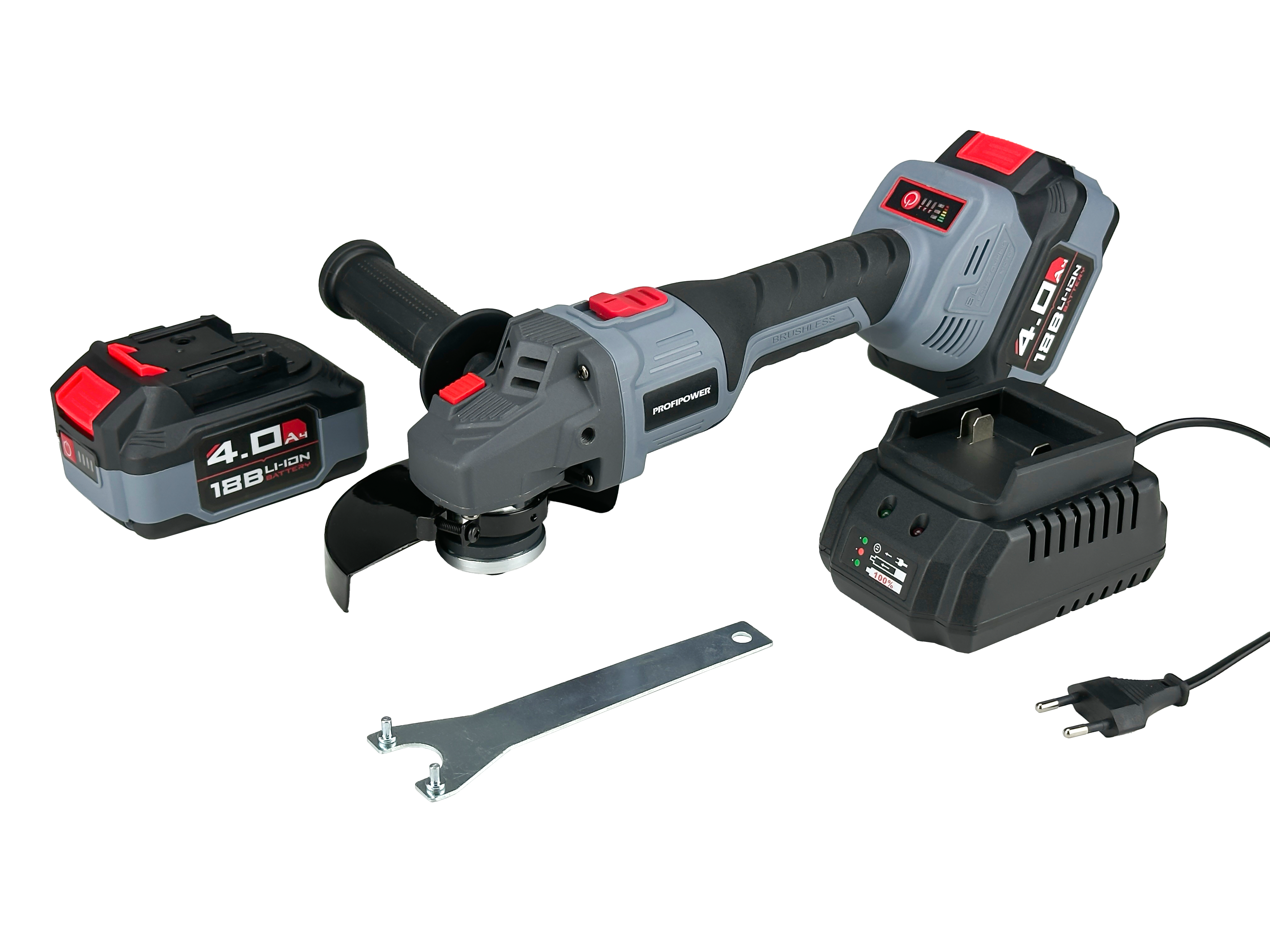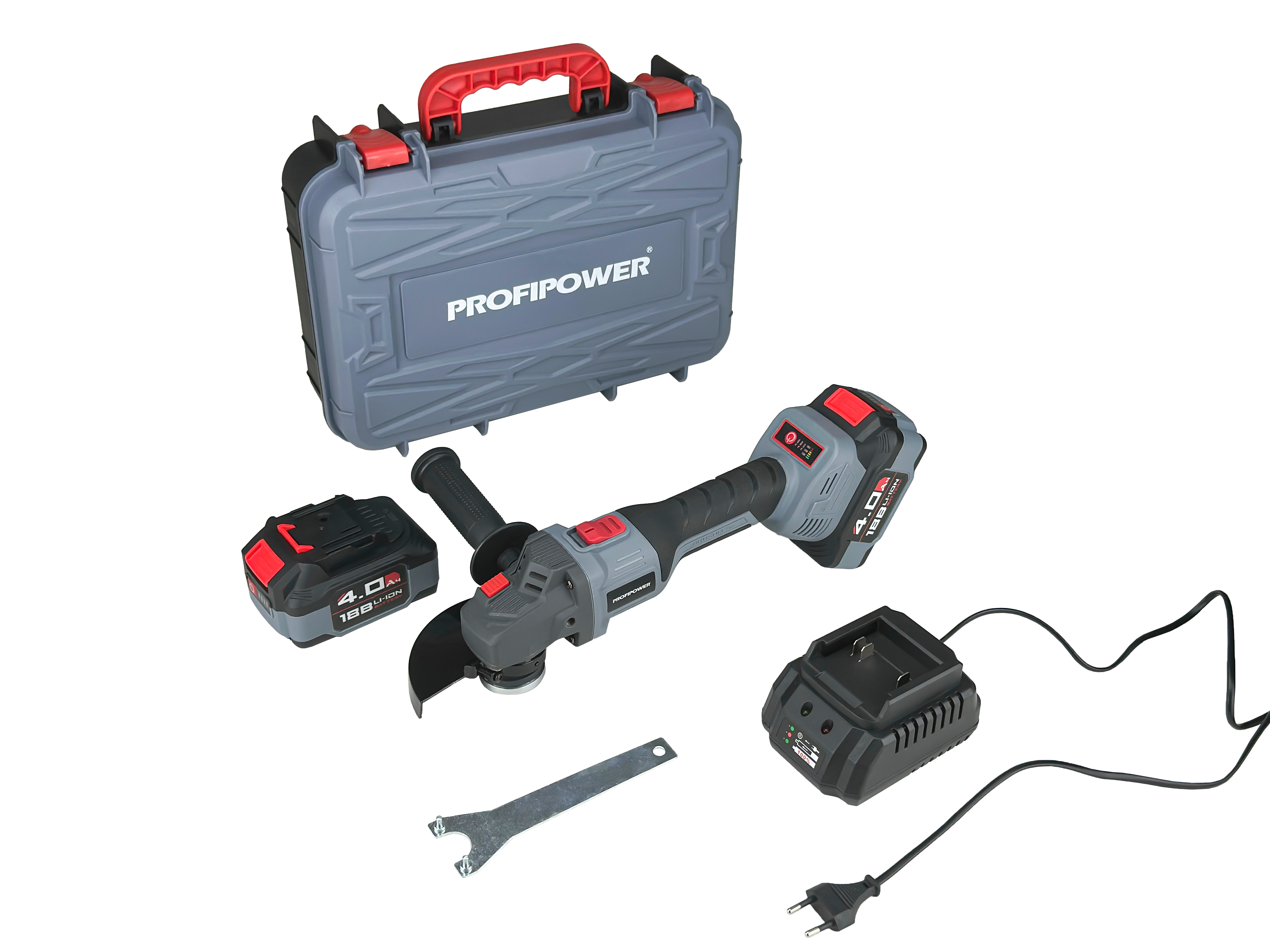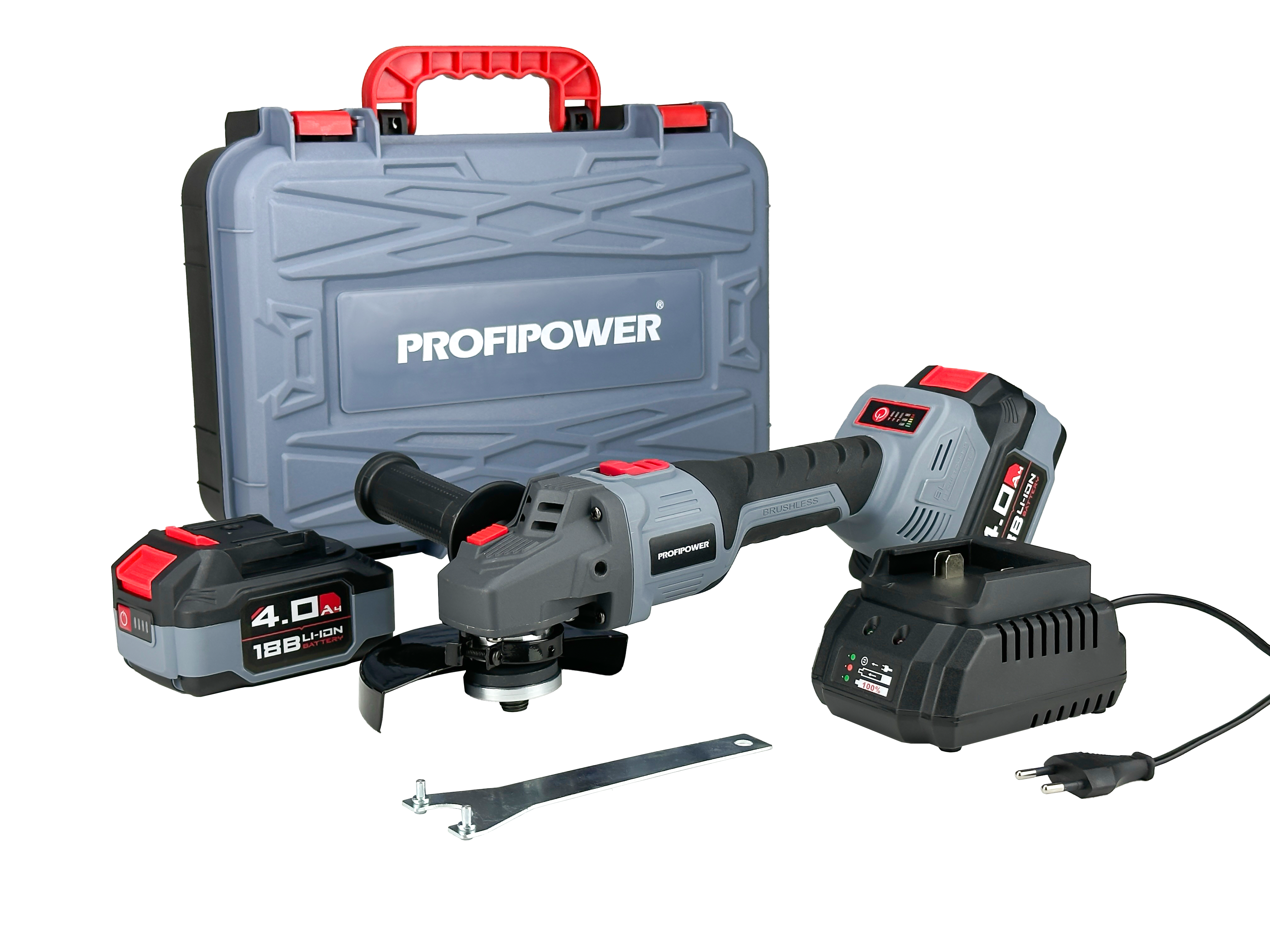 - УШМ;; - Аккумулятор;; - Защитный кожух;; - Ключ фланцевый;; - Зарядное устройство;; - Внутренний фланец и контргайка;; - Кейс;; - Инструкции с гарантийным талоном.