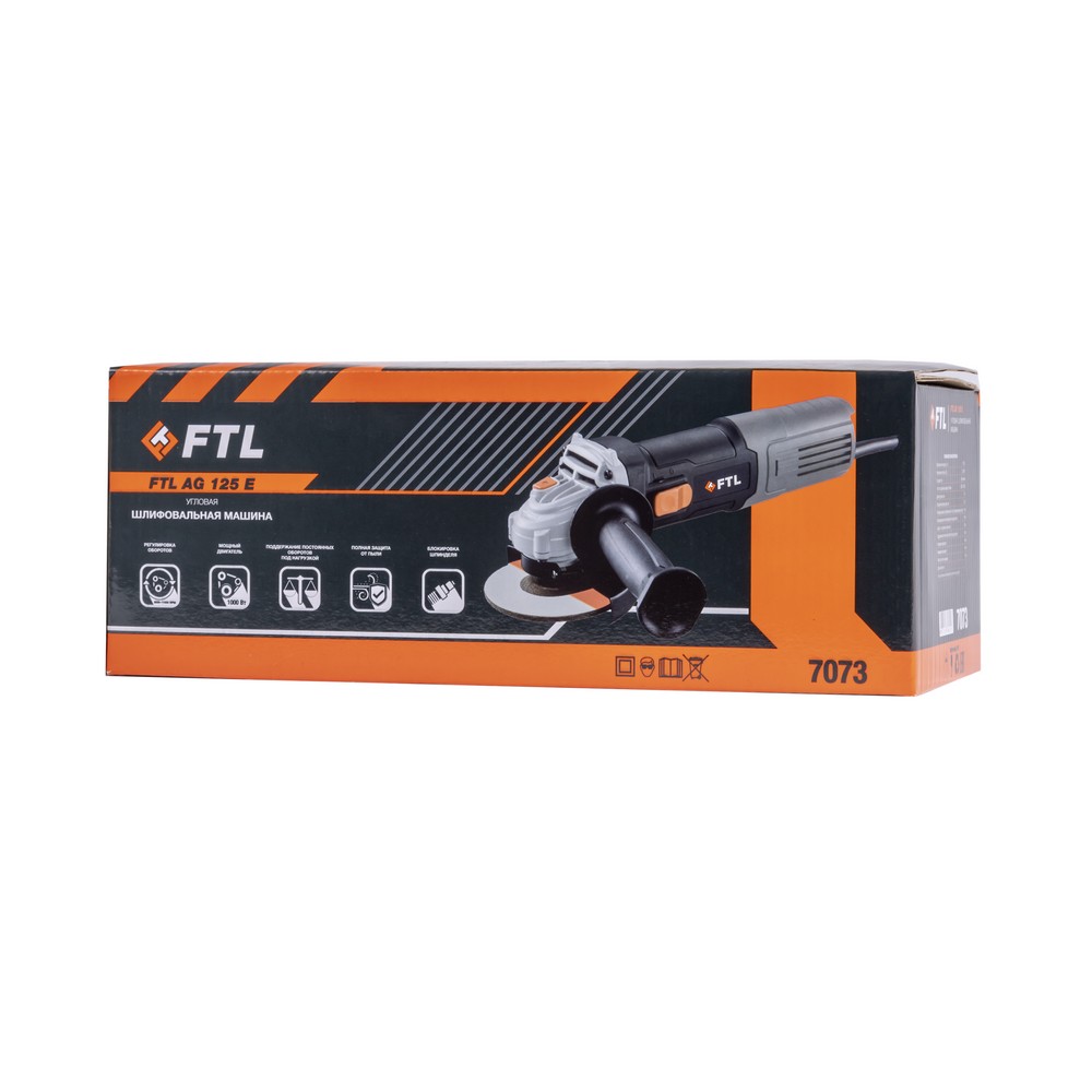 Угловая шлифовальная машина сетевая FTL AG 125 E - профессиональный инструмент для резки, шлифования и зачистки изделий из металла, камня и прочих материалов. Оси двигателя и инструмента расположены под углом 90 градусов по отношению друг к другу. Узкий удобный хват и небольшой вес обеспечивают комфортную работу. Функция регулировки оборотов расширяет базовый функционал УШМ, позволяя выполнять такие виды работ, как шлифовка мягких материалов, брашировка деревянных поверхностей, полировка (ограниченно). Бронированные статор и якорь, а также пылезащищённые воздухозаборные отверстия позволяют эффективно работать в загрязнённых средах, в том числе на строительных объектах. Модель отличается простотой обслуживания, например, угольные щетки легко заменить самостоятельно, для этого достаточно открутить всего один саморез крепления задней рукоятки и сняв крышку корпуса произвести их замену.