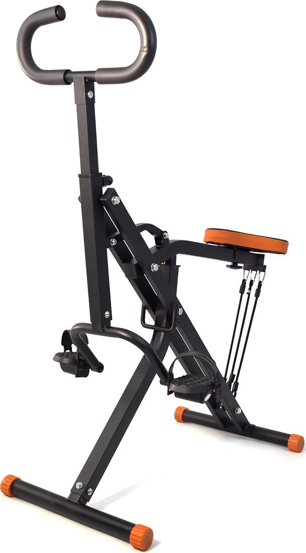 | Информация | Тренажер Rider — это многофункциональный тренажер, который позволяет проводить как кардио, так и силовые тренировки. Его особая конструкция сочетает упражнения гребли и приседания одновременно, что даёт нагрузку на все группы мышц: руки, плечи, корпус, ноги. Особенности тренажера: Прочная и надежная металлическая конструкция; Механическую нагрузку создают ремни-утяжелители, закреплённые между сиденьем и рамой. Максимальная нагрузка в базовой комплектации — 15 кг (3 ремня по 5 кг). Для снижения нагрузки нужно открепить один или два ремня; Предусмотрены нескользящие резиновые накладки на ножки степпера для защиты пола; Для безопасности и защиты от скольжения педали оснащены рифленым покрытием; Сиденье с мягкой обивкой регулируется в 5 положениях по горизонтали и в 3 по вертикали (0, 10, 20 градусов); Руль регулируется в 4 положениях; Компактный тренажер, удобное хранение. |