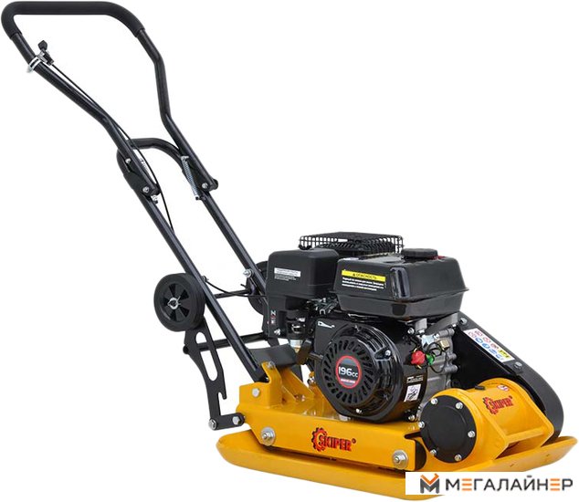 Складная ручка для удобства транспортировки и хранения. Основание плиты из конструкционной закаленной износостойкой стали. Открытая конструкция основания плиты обеспечивает её высокую самоочистку. Большие съемные колёса для лёгкой транспортировки. Защитный кожух приводного предотвращает попадание на него песка и почвы, увеличивает ресурс приводного ремня. Высокопрочные амортизаторы снижают вибрацию. Управление дроссельной заслонкой на ручке управления виброплитой для удобства оператора.