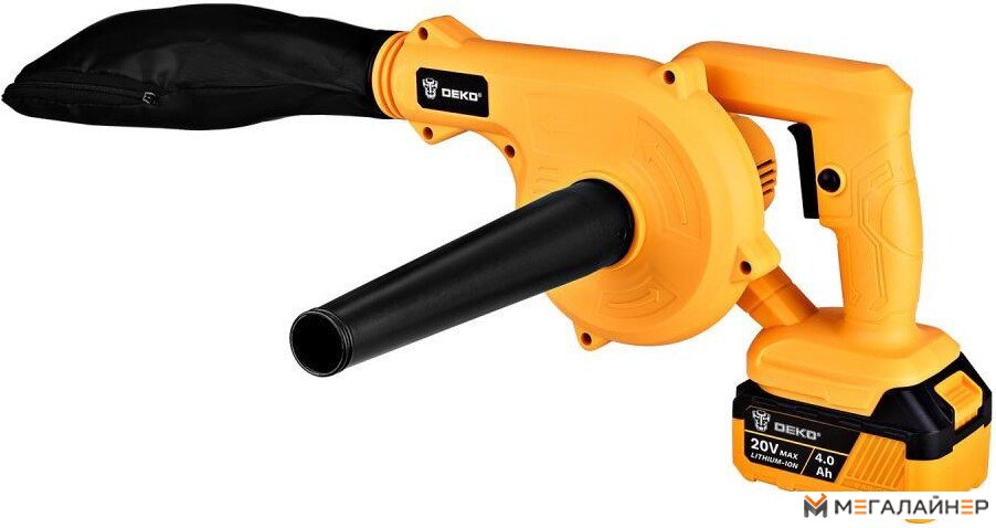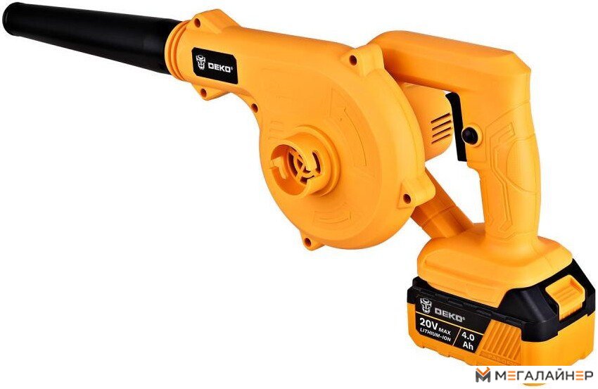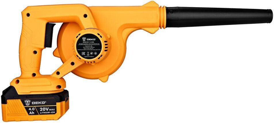 | Комплектация | - Воздуходувка - 1 шт. - Насадка-трубка - 1 шт. - Аккумулятор 4.0 - 1 шт. - Зарядное устройство - 1 шт. - Отвертка - 1 шт. - Руководство по эксплуатации - Коробка |
